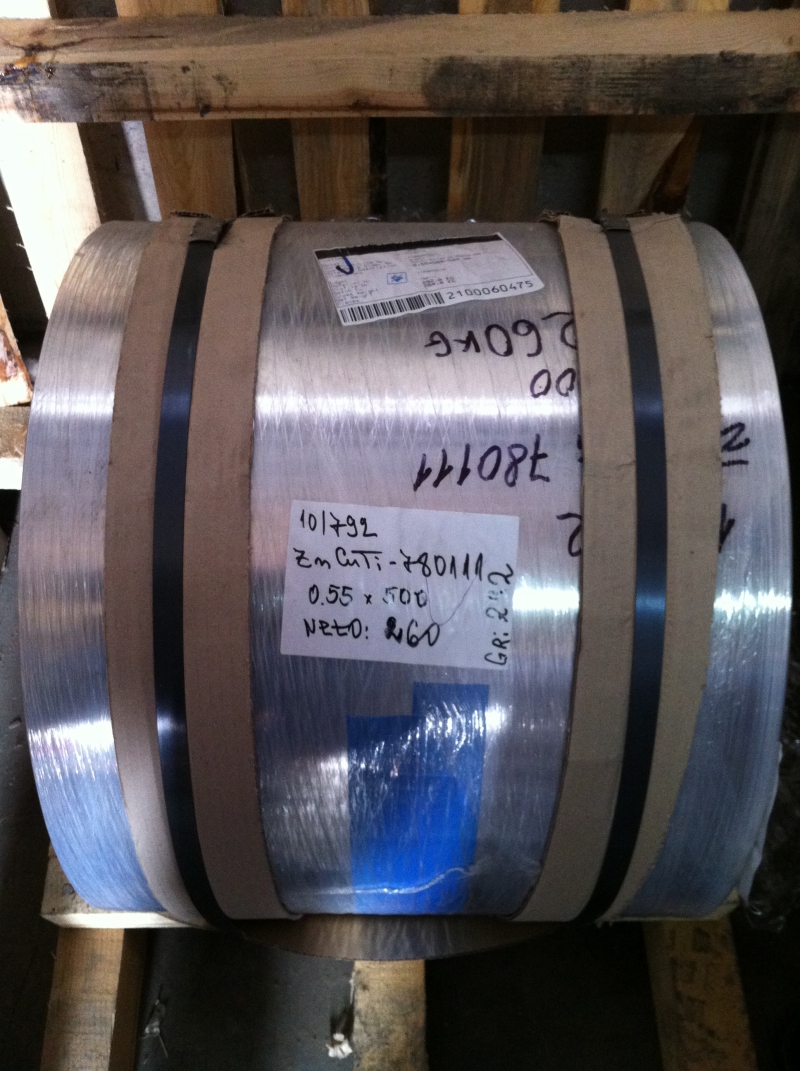 Цинкови листа и рула (Zn>99%), произведени по стандарт EN 988 – различни дебелини (0.50; 0.55; 0.65; 0.80; 1.00 мм) и ширини, полутвърди.Справка за размери на склад ZnTi, полутвърди.За други размери – моля запитайте! листа:0.55/1000/2000 мм - НАТУРАЛЕН ЦВЯТ0.80/1000/2000 мм - НАТУРАЛЕН ЦВЯТ1.00/1000/2000 мм - НАТУРАЛЕН ЦВЯТленти и рула:0.50/300 мм - НАТУРАЛЕН ЦВЯТ0.55/1000 мм - НАТУРАЛЕН ЦВЯТ0.60/1000 мм - ФАБРИЧНО СЪСТАРЕНЦИНК (Zn) НА БЛОК (99,99)ОЛОВНИ (Pb) ЛИСТА 4/1000/1000 мм ОЛОВО (Pb) НА БЛОК (99,99)